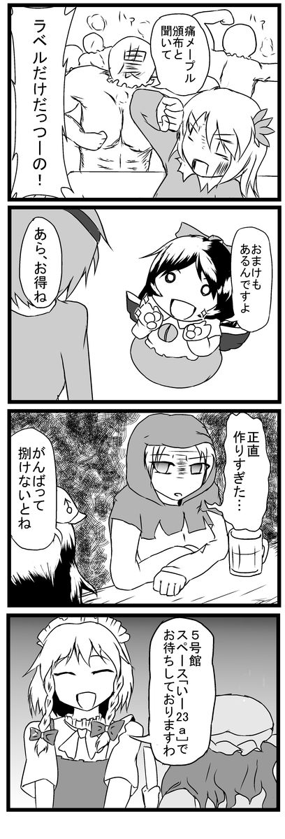 当日はスペースい-23a「もんどーる」にてガルベロスさんとともにまったりしている予定です。スケブも可能な限り受け付ける予定ですので是非遊びにいらしてくださいね。