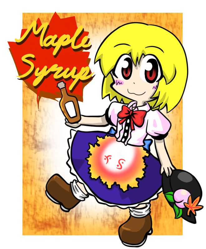あと量産型痛メープルラベル。生協のメープルシロップのラベルと同じサイズなので、元のラベルをはがして貼れば痛メープルが作れますw 柄は3種類ご用意しました。