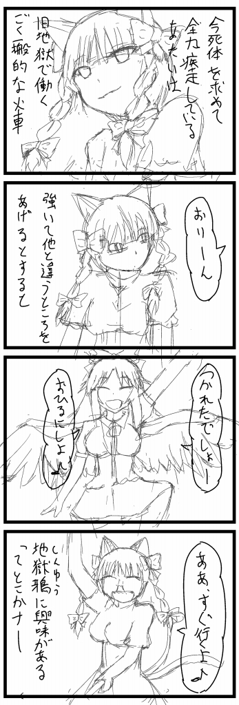 skypeで愚痴ってたら電波が降りてきたので、鳥カルテットのイメージをつかむために試しにそれをSSとしてまとめてみました。わりとほめられたので投稿してみます。pixivでも見れます。